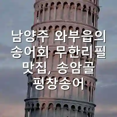 경기도 남양주 와부읍에 위치한 송어회 무한리필 맛집인 송암골 평창송어를 소개합니다. 이곳은 평창송어를 사용하는 송어회 전문점으로, 다양한 세트 메뉴가 마련되어 있어 다채로운 맛을 경험할 수 있습니다. 특히 무한리필 메뉴가 있어 친구들과 함께 즐기기 좋은 장소입니다. 오늘 글을 통해 이곳의 위치, 메뉴, 맛 등을 자세히 알아보세요!