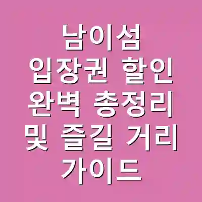 남이섬 입장권 할인 정보와 다양한 즐길 거리를 정리했습니다. 온라인 예약을 통해 할인 및 편리함을 동시에 누릴 수 있으며, 다양한 액티비티로 풍성한 경험을 할 수 있습니다. 남이섬에서의 특별한 하루를 계획해보세요.