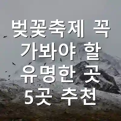 이번 포스트에서는 벚꽃축제를 즐길 수 있는 유명한 5곳을 소개하였습니다. 각 지역마다 고유한 매력이 있어 다양한 경험을 할 수 있습니다. 벚꽃 시즌이 다가오면 미리 계획을 세워서 아름다운 벚꽃을 만끽하시기 바랍니다.