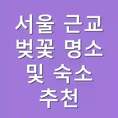 서울 근교에서 벚꽃을 즐길 수 있는 명소와 숙소를 소개했습니다. 여의도 한강공원과 석촌호수는 가족 단위 나들이에 적합하며, 편리한 숙소 선택이 중요합니다. 미리 계획하고 예약하여 스트레스 없는 봄 나들이를 즐기세요.