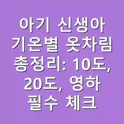 아기 신생아의 옷차림은 기온에 따라 다르게 준비해야 하며, 특히 10도, 20도, 영하에서는 각기 다른 의류가 필요합니다. 기온에 맞춰 아기의 체온을 안정적으로 유지하는 것이 중요합니다. 이 글을 통해 기온별 옷차림에 대한 명확한 가이드를 제공하였습니다.