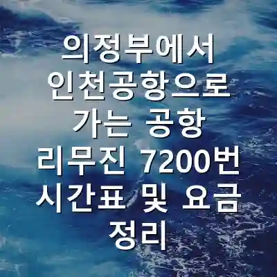 공항 리무진 7200번은 의정부와 인천공항을 연결하는 편리한 교통수단입니다. 최신 시간표, 요금 정보, 예약 방법 등을 통해 여행객들에게 유용한 정보를 제공합니다. 사전 예약을 통해 쾌적하고 경제적인 이동을 경험해 보세요.