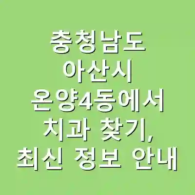 충청남도 아산시 온양4동에는 다양한 치과가 위치해 있습니다. 치과를 선택할 때는 전문성과 접근성을 고려해야 하며, 다양한 정보를 통해 최적의 선택을 할 수 있습니다.