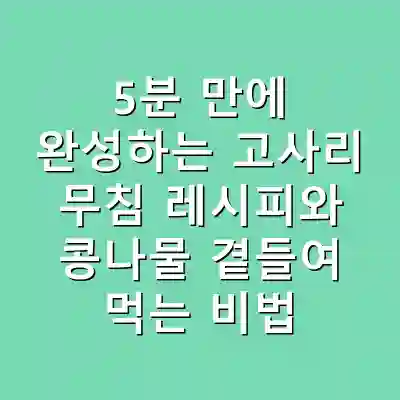 5분 만에 완성되는 고사리 무침 레시피와 콩나물의 조합은 건강한 영양가를 제공합니다. 미리 준비된 재료와 개인 취향에 맞는 양념으로 맛을 조절할 수 있는 유연함이 매력적입니다. 이 간단한 레시피로 바쁜 일상 속에서도 맛있고 건강한 식사를 즐겨보세요.